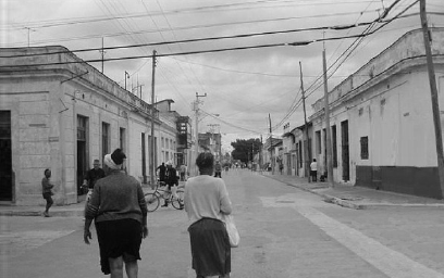 Los ojos atravesaban la calle como dos lombrices, dibujando cosas milagrosas donde sólo había salideros de agua, montañas de basura, calles rotas, viejos en la cola de la bodega, viento, framboyanes, gorriones con hambre, niños sucios o lindas mulatas caminando, calle abajo, bajo el sol tropical.